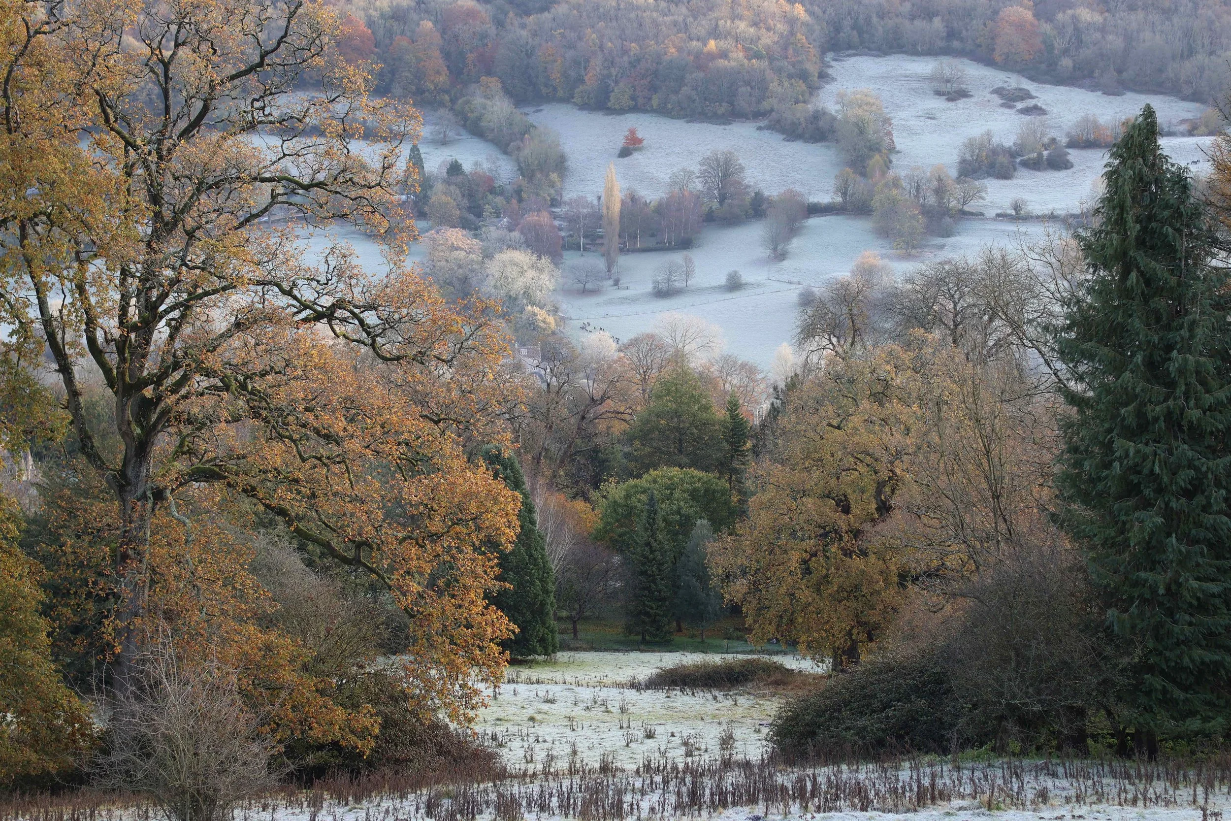 There is plenty to experience in the gardens during winter, which are full of frosty grasses and striking shapes set against spectacular misty valley views. Late sunrises and early sunsets give dramatic skies, while architectural trees, bare branches and crispy seedheads provide lots of interest for the senses. The gardening team leave all the herbaceous growth of the year standing across the borders, giving beautiful textures and colours for garden enthusiasts to enjoy while also ensuring best horticultural practice for our ecological goals. Insects can live in the standing stems over winter and the coverage of the ground helps to keep water in the soil.